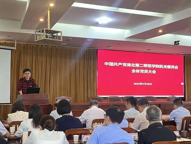 5月29日下午,机关党委在行政楼五号会议室召开全体党员大会暨学习贯彻党的二十大精神专题培训班结业典礼,校党委副书记胡兴、纪委书记刘昕出席,机关党委全体党员参加,大会由机关党委书记王青主持。