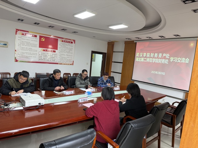 2月28日上午,武汉学院财务资产处处长韩艳、副处长覃迎霞一行2人来我校调研交流,调研交流在行政楼3号会议室进行。财务处处长王诗龙主持交流会。