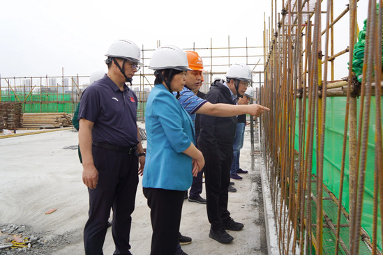 会前,与会人员佩戴安全帽前往工地视察施工情况。校领导先后在3号楼屋面、2号楼地下室与地面衔接道路、1号楼样板间驻足,观察工程建设效果与现场环境,询问工程进度及施工计划,并针对质量安全、环境美化、人文设施等提出指导意见。