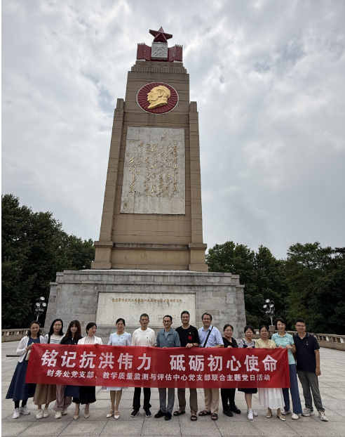 本网讯(通讯员 唐荣华)为深入贯彻中央八项规定精神学习教育,扎实开展“弘扬大别山精神、抗洪精神、抗疫精神”专项工作,6月23日,财务处党支部、教学质量监测与评估中心党支部全体党员共赴武汉江滩抗洪纪念碑及展览馆,以“铭记抗洪伟力 砥砺初心使命”为主题开展联合主题党日活动,共同回溯波澜壮阔的抗洪历史,感悟伟大抗洪精神的时代力量。